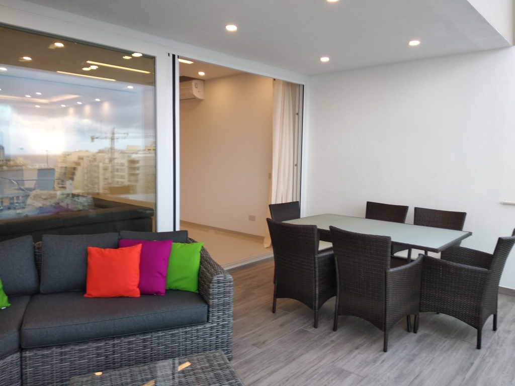 St Julians - Located just off Spinola Bay, just a few minutes walk from some of the best restaurants, bars, and close to all amenities, bus stops, and supermarkets. Luxuriously finished modern apartment with a square layout, enjoying amazing Sea Views. - Spacious sea-facing, furnished Terrace - Large open plan kitchen, dining, and lounge area - 2 Double Bedrooms - 2 Bathrooms - Fully air-conditioned - Fully equipped