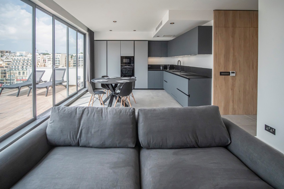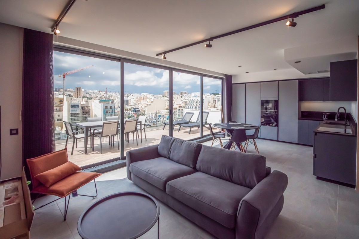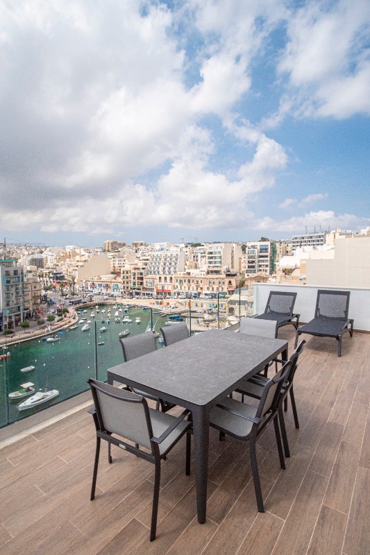 ST. JULIAN'S - Luxurious and modern seafront Penthouse, overlooking the stunning Spinola Bay. The property is ideally located close to a host of amenities including cafes, restaurants, shops etc. The property is flooded with natural light and enjoys plenty of space. The accommodation comprises of: